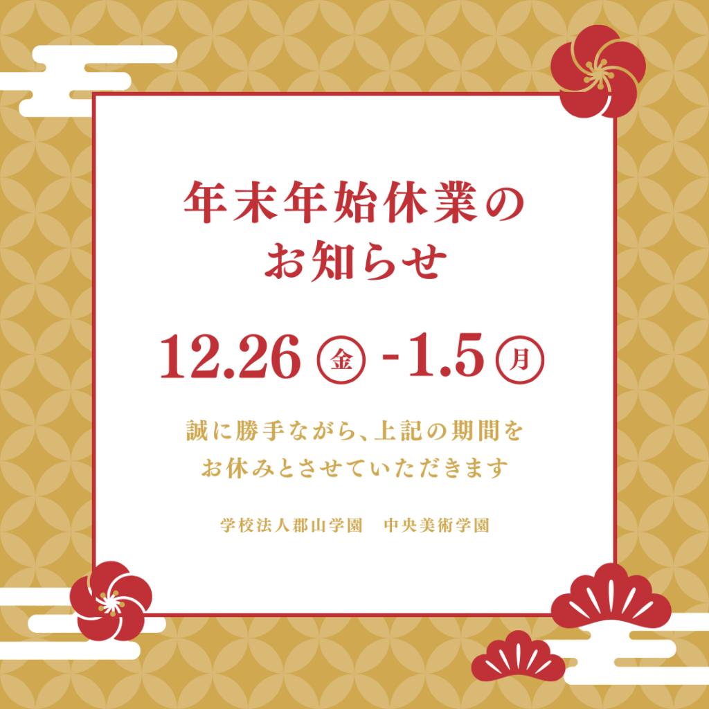 誠に勝手ではございますが、12月26日(金)~1月5日(月)は年末年始休業とさせていただきます。