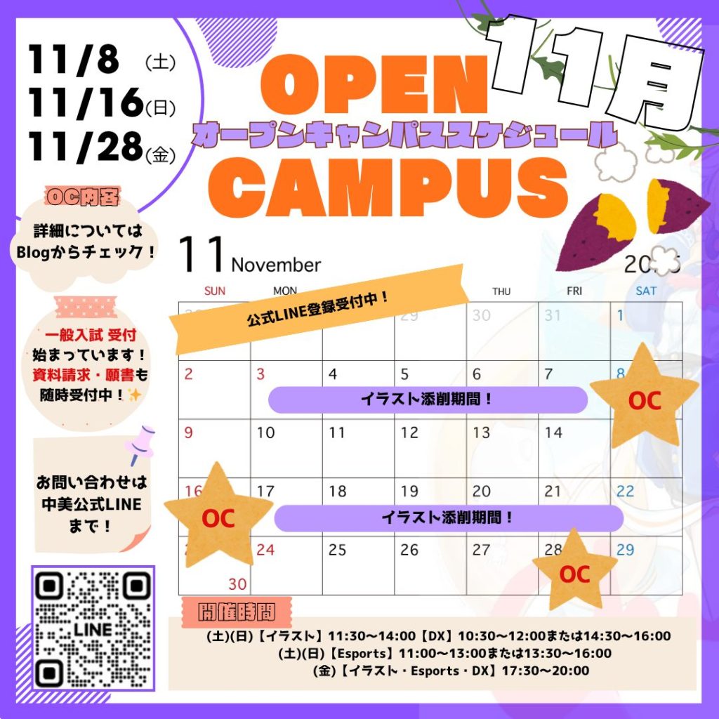 11月のオープンキャンパスについてのご案内です💁♀️✨