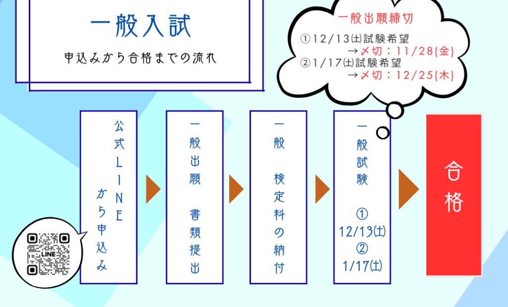 試験日やその他内容など、何か質問があれば「一般入試質問」と送ってください📩